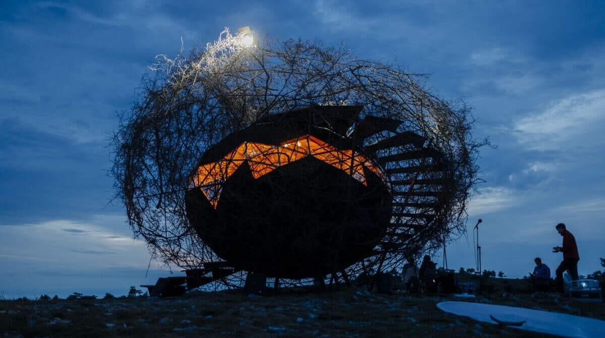 Izvaljeno jaje u gnijezdu ima dvojnu funkciju, služi kao planinarsko sklonište te promatračica za ptice.
