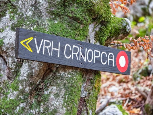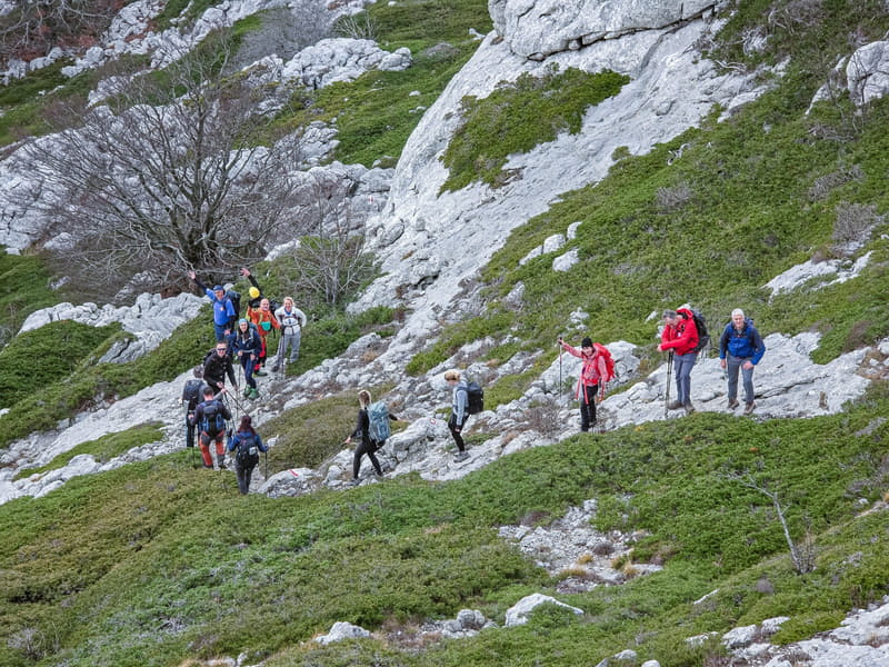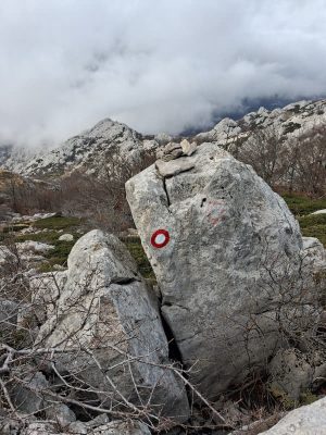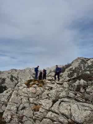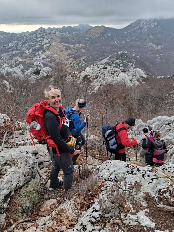 Nakon ugodne vožnje i kratke pauze stižemo na početnu točku našeg izleta i krećemo na stazu koja je stvarno zanimljiva. Šumske staze pune lišća, divan velebitski krš, pokoje jezerce. I ono čemu se najviše veselim, pentranje po stijenama na usponu, iako sam svjesna da bi nekima u grupi to mogao biti problem. Ferdo je krenuo svojim ubrzanim korakom, vjerojatno se činilo ubrzanim jer jedan njegov korak predstavlja dva koraka čovjeka prosječne visine (čitaj Ferdo je jako visok).