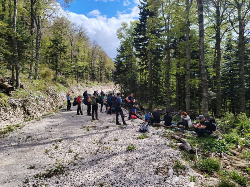 Već pri samom početku jasno je da staza neće biti lagana – uspon je stalan, bez predaha. No okruženje očarava: ulazimo u šumu prašumskog tipa, gdje lagani vjetar donosi olakšanje, a priroda nas potpuno uvlači u svoj ritam. Nakon nešto više od dva sata stižemo na vrh Male Plješivice, a zatim nastavljamo do glavnog vrha, gdje nas dočekuje jedan od najljepših pogleda u Hrvatskoj.