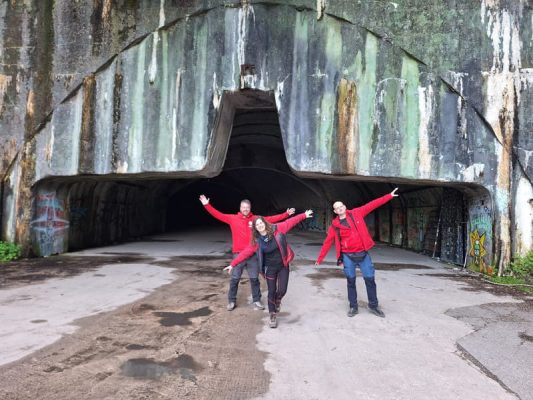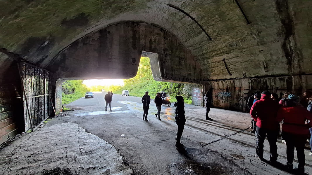 Obilazmo goleme betonske tunele, gdje na trenutke nestaje svaka zraka svjetla. U jednom trenutku, gasi svjetiljku – tama je potpuna, gusta, tiha. A onda, poput scene iz filma, uključuje bateriju i igra sjena oživljava zidove tunela – figura, svjetla, siluete – istodobno zastrašujuće i očaravajuće. Na kraju, u daljini, vidimo i svjetlo na kraju tunela – doslovno. Taj simbolični trenutak, u tišini podzemlja, duboko se urezuje u pamćenje. Priča o povijesti, tehnologiji i propasti ovog kompleksa dodatno pojačava dojam – kao da smo proživjeli filmsku sekvencu.