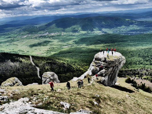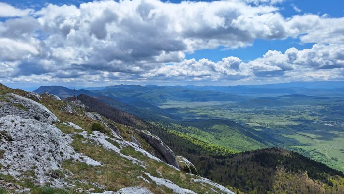 Na vrhu radimo dužu pauzu – jedemo, odmaramo, smijemo se, upijamo svaki trenutak. Pogled se otvara u svih 360 stupnjeva: prema zapadu se pružaju konture Plitvičkih jezera i Medviđaka, dok se prema jugu vidi cijeli lanac Ličke Plješivice sve do najvišeg vrha Ozeblina i Kremena. Na istoku se nižu Koreničko i Bijelo polje, a dalje prema Krbavskom polju, dok se na sjeveru pruža pogled prema dolini Une, Cazinskoj krajini, Bihaću i planinama Bosne i Hercegovine. Obzor je bez kraja, a nebo čisto, kao da je sve oko nas jedno veliko planinarsko platno.