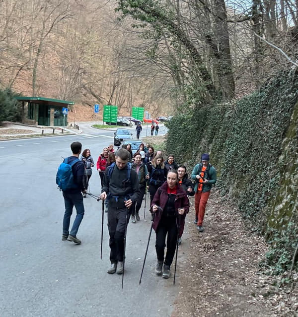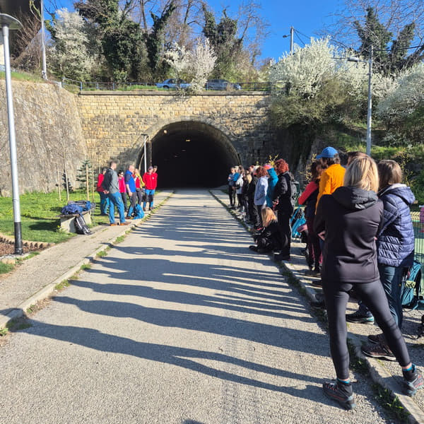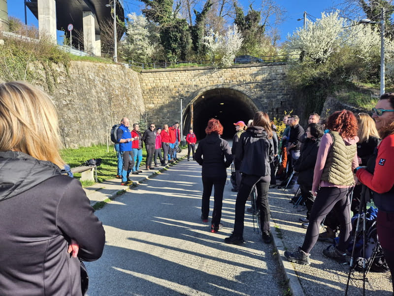 Krenuli smo mini usponom iznad tunela. Trebalo se malo uskladiti, od hodanja u grupi, desnom stranom, jedan iza drugog, obilaženja pa propuštanja horde studenata, do prelaska ceste, što se pokazalo kao mala organizacijska vježba sama za sebe. No kako je vrijeme prolazilo, sve je nekako sjelo na svoje mjesto. Razgovori su krenuli, korak se uhvatio, a šuma oko nas napravila je svoje.
