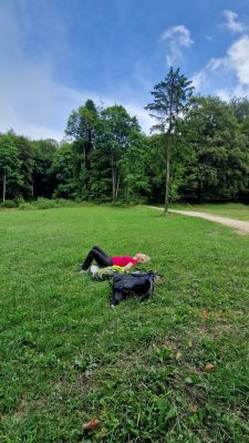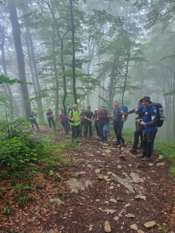 Vesela skupina kreće put doma Gospodična na kofeinski pogon. Strmina nije pretjerana, ali u kombinaciji sa sparinom čini da se kupamo u svom znoju! (Jedna stavka iz raspisa ispunjena – kupanje!)