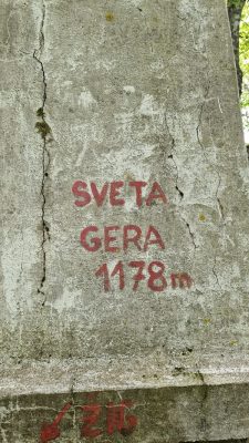 Stigla je i subota i okupljanje izletnika i vodiča. Ukupna brojka 16. Nebo sivo, vremenska prognoza za Pokljuku, gromovito i pljuskovito! Brzinsko vijećanje vodiča i priopćenje, odlučeno je! Ide se na Trdinov vrh! Pišem Trdinov vrh jer idemo iz Gabrja u Sloveniji, inače Sveta Gera! OK, manje vožnje, ali se i nadmorska visina popela za još 200 m i kusur! Bit će to fakat lagana šetnjica!