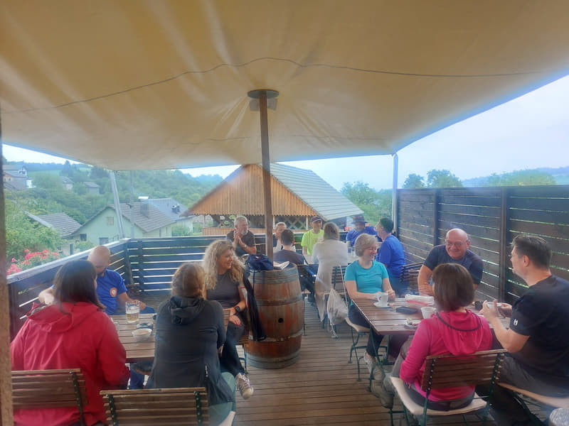 Gospodična dostignuta! S terase prekrasan pogled na maglu! Dobro raspoloženje nas ne napušta! Nisam ni sanjao da ću hodati u društvu 15 mazohista koji su to bolje raspoloženi što su uvjeti teži!? I to me veseli!
