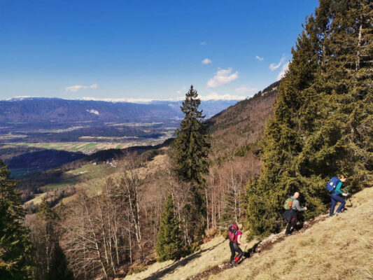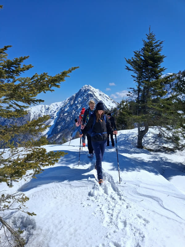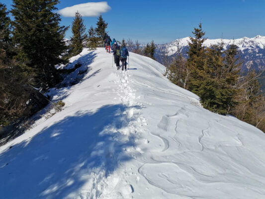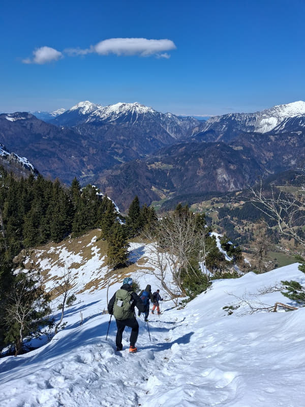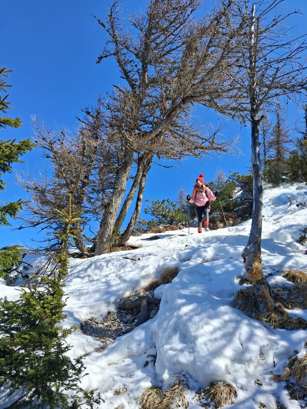 Izmjenjivali su se periodi stavljanja i skidanja dereza, zaobilaženja srušenih stabala, strmih uspona pa lagane šetnjice po ravnoj i ugodnoj stazi. Taman na početku uspona vrijeme je pokazalo svoju drugu, bolju stranu. Vjetar je postao blag, taman dovoljno da olakša preznojavanje na strmijim dionicama, a sunce se uzdiglo visoko i na nebu skoro bez oblačka učinilo ovaj dan predivnim. Teško je bilo vjerovati da smo samo prije dan svjedočili svim onom užasima koje nam je priroda priredila. Vidici su bili prekrasni.
