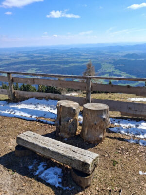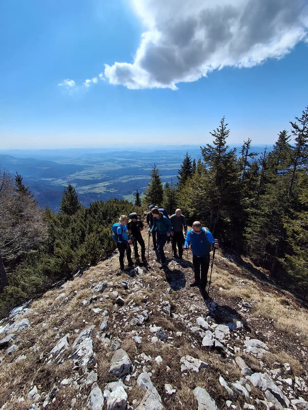 Konačno je došla i subota! Na jutarnjem okupljanju vrijeme je bilo prohladno, ali bitno bolje nego prethodnih dana, nekako mirnije i optimističnije. Put do Gozda protekao je ugodno uz poneki podsjetnik da su pod naletima jakog vjetra, iako čvrsti i stabilni, i krovovi i stabla jednako krhki. Uspon prema Tolstom vrhu bio je kako to obično biva, najprije malo blaži pa od Saškine klupice strmiji. Staza je bila mjestimice pod snijegom, ponegdje i ledena, pa onda blatnjava i na kraju suha kao usred ljeta.